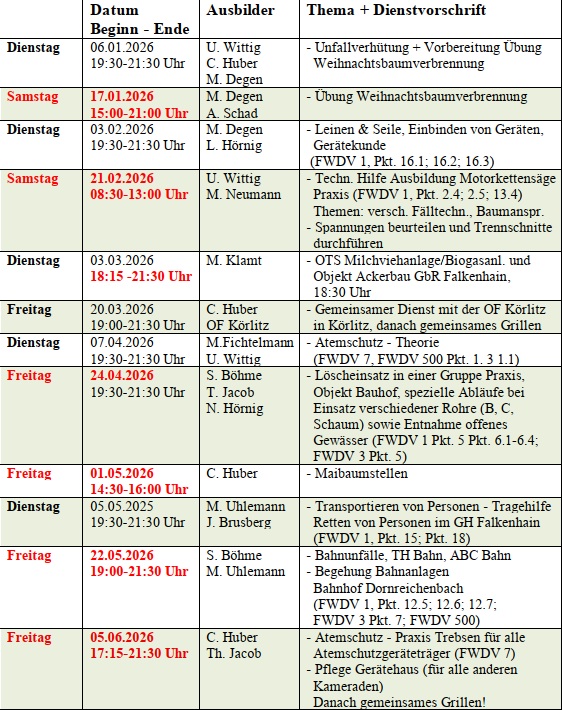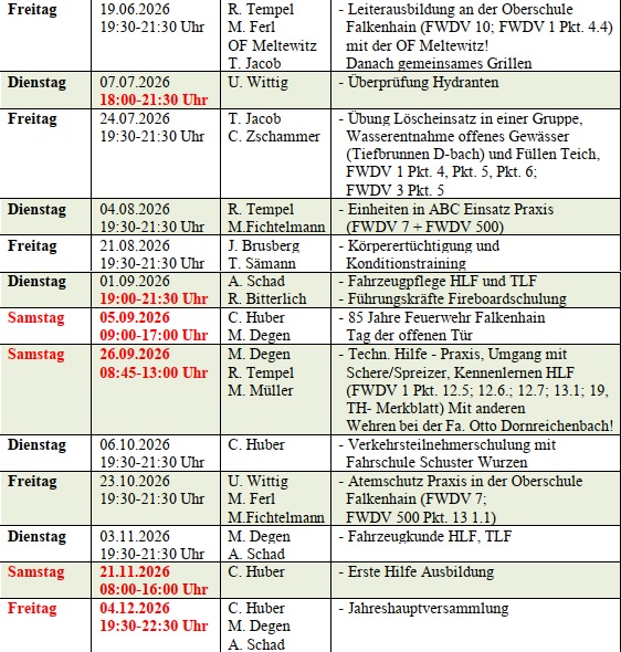 Dienstplan OFW Falkenhain